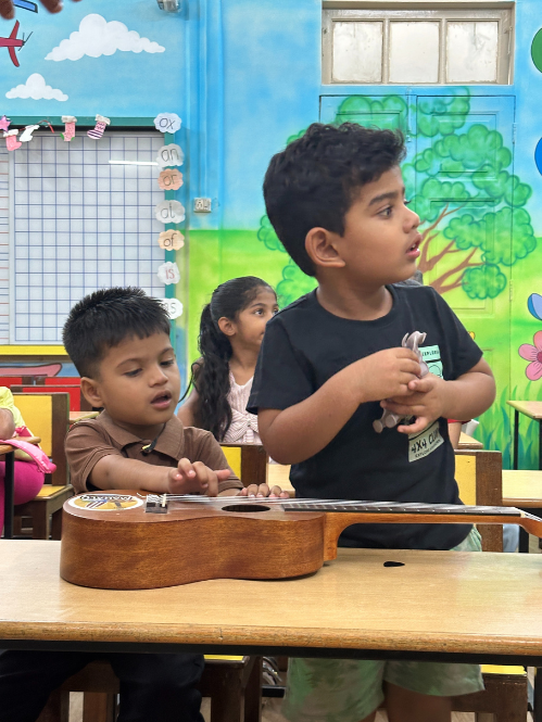 Our classes enable a structured learning setup that helps students understand chords and strumming patterns.